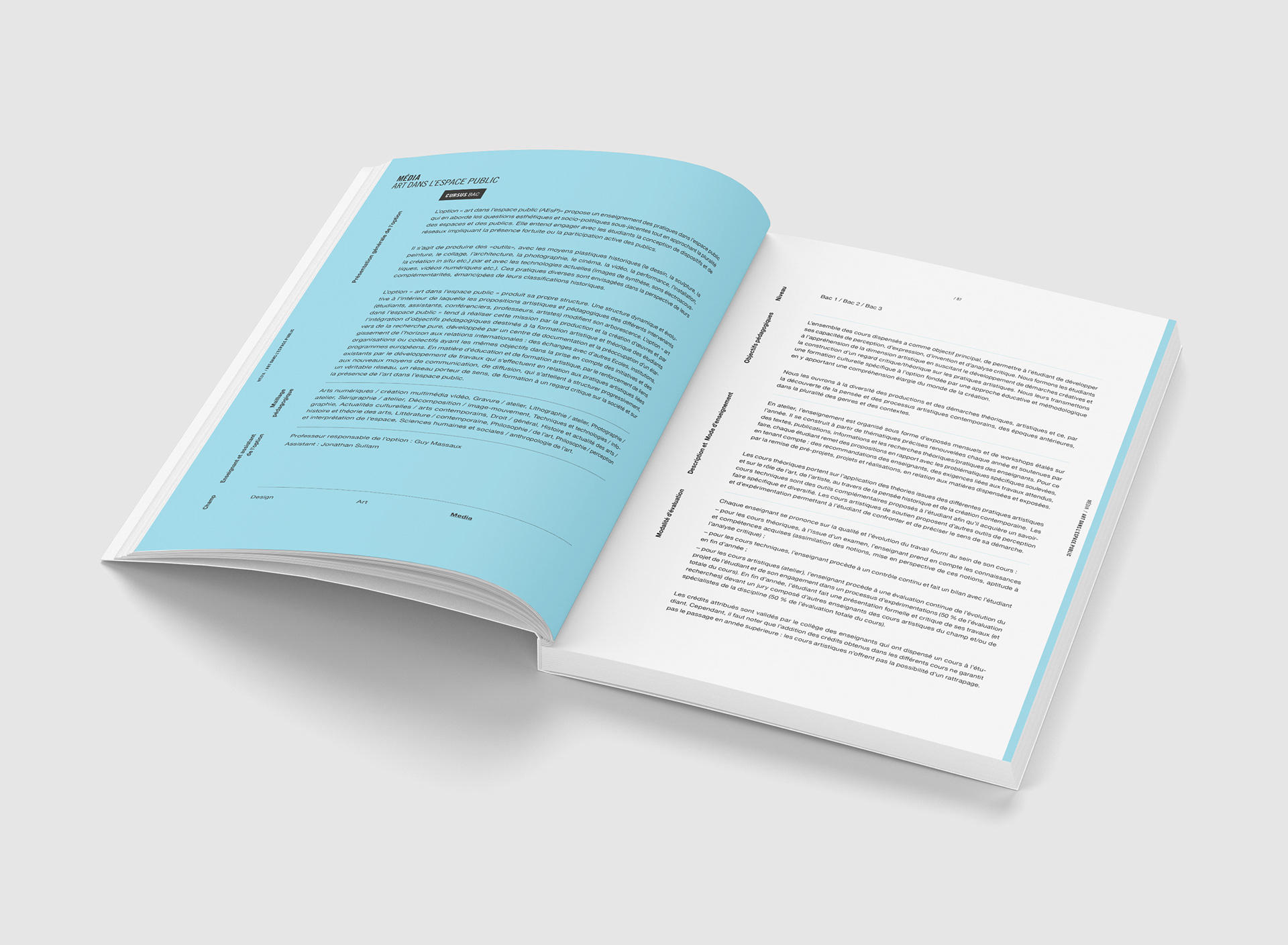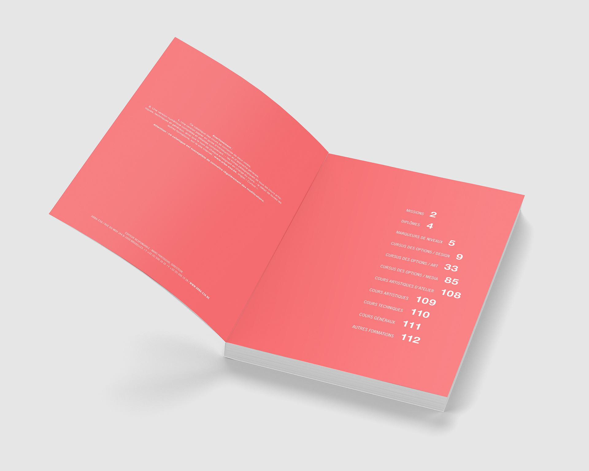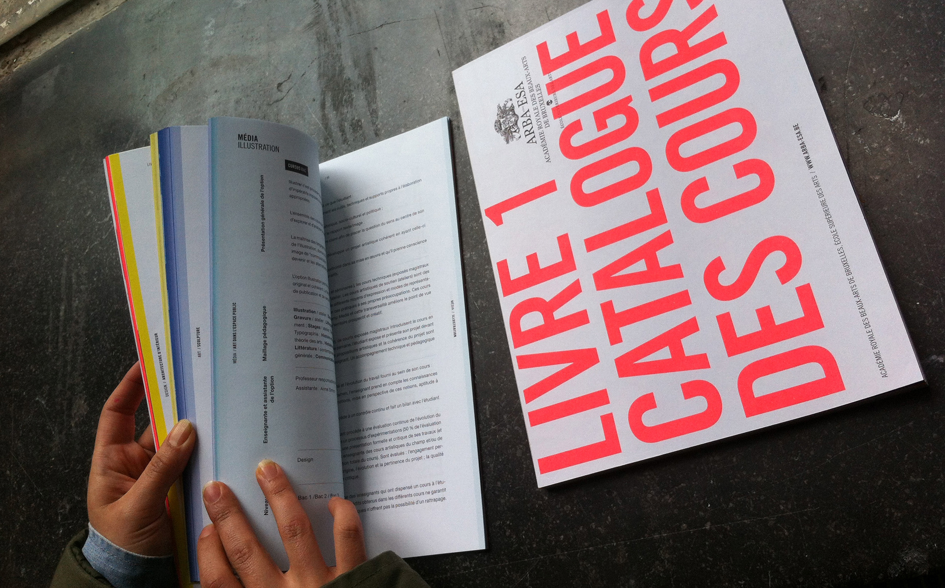 Courses catalog of the Royal Academy of Fine Arts, Brussels. 210x290mm, uncoated paper.